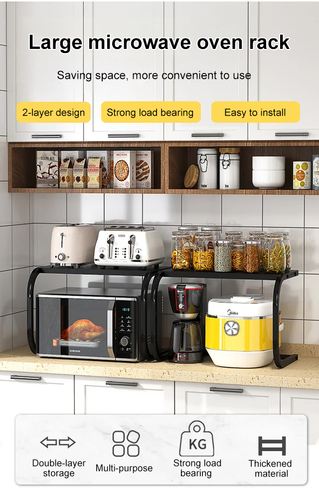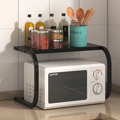 Kitchen microwave oven storage rack